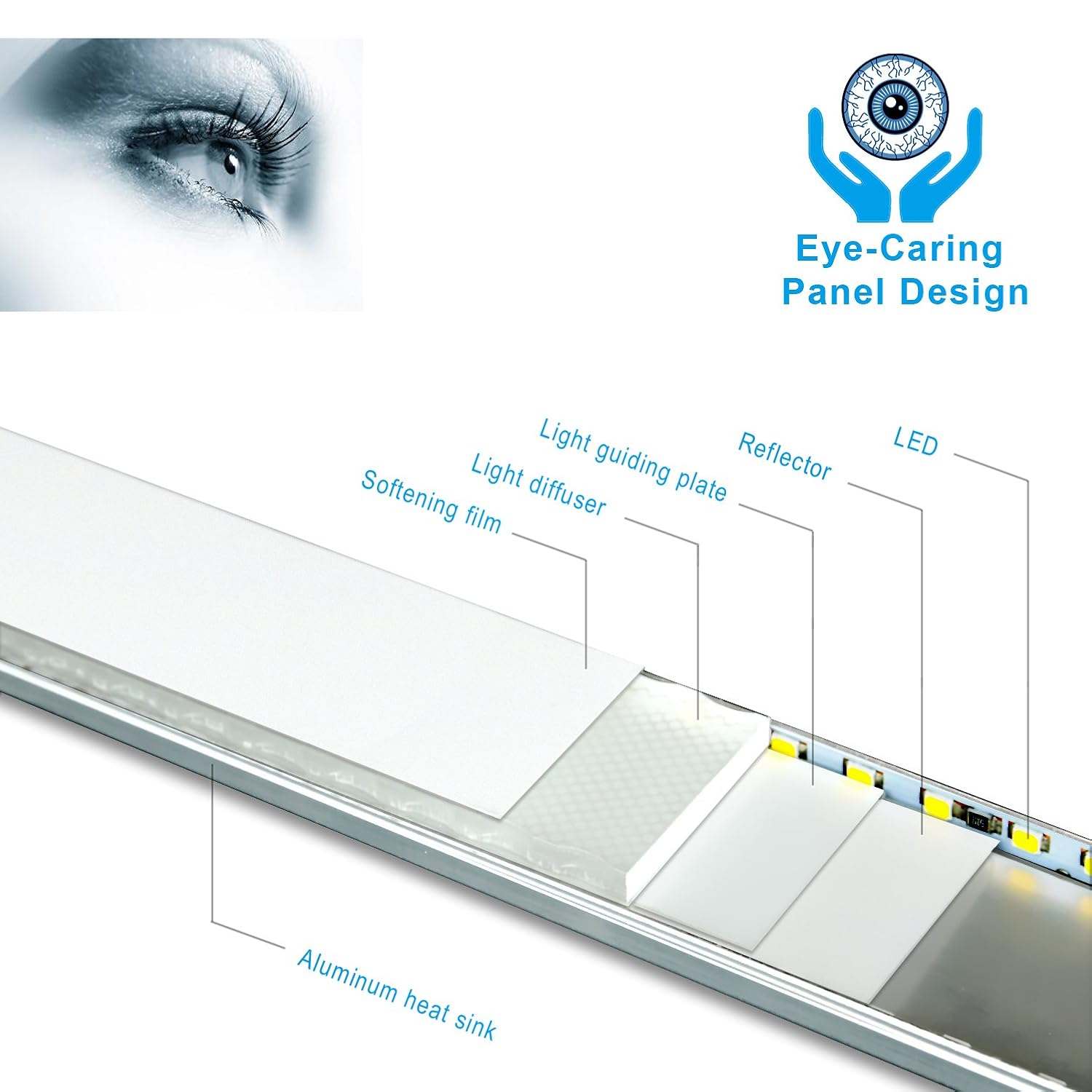 除此之外还有5级亮度,LED 灯的设计是在侧面,通过四层不同的反光折射和漫射,最后发出的光很柔和。